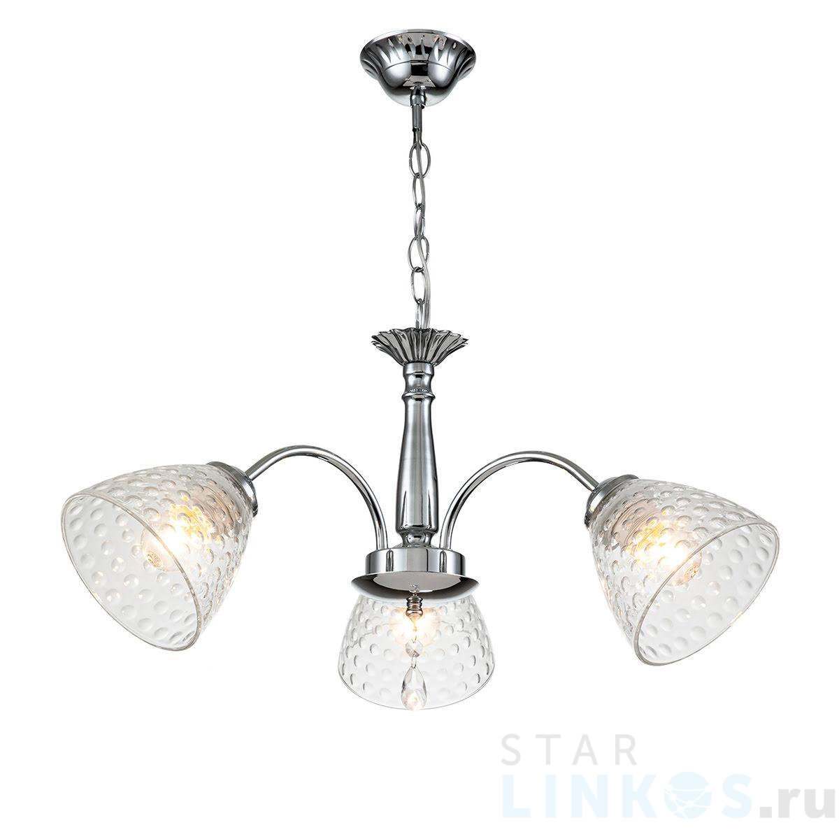 Поставщик рекомендует использовать лампы накаливания с цоколем E27 для освещения площади 7 м2. Подвесная люстра Escada Freesia 658/3PL Chrome в используется в интерьере спальни с установкой на потолок.