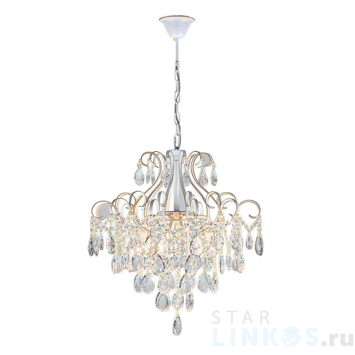 Поставщик рекомендует использовать лампы накаливания с цоколем E27 для освещения площади 22 м2. Подвесная люстра Escada Queen 1137/6S в классическом стиле используется в интерьере гостиной с установкой на потолок.