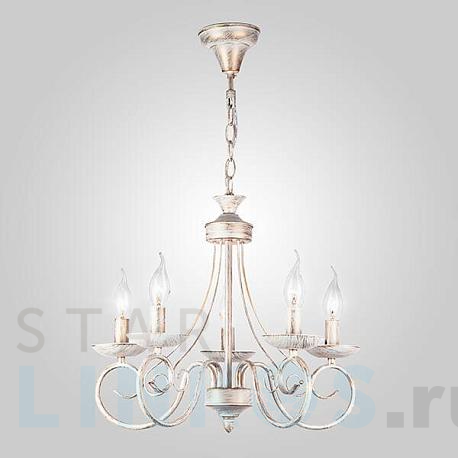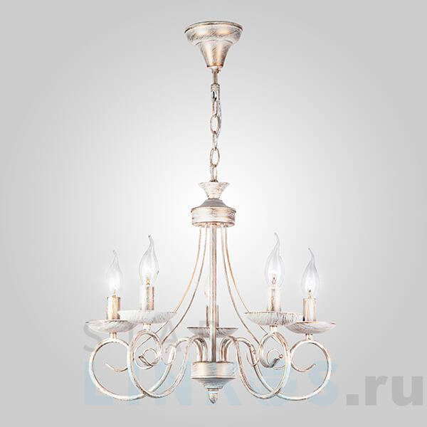 Поставщик рекомендует использовать лампы накаливания с цоколем E14. Подвесная люстра Eurosvet 22404/5 белый с золотом в классическом стиле используется в интерьере гостиной с установкой на потолок.