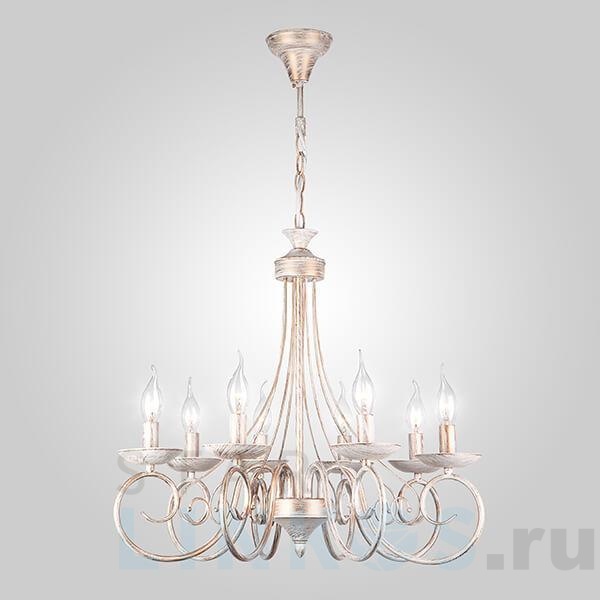 Поставщик рекомендует использовать лампы накаливания с цоколем E14. Подвесная люстра Eurosvet 22404/8 белый с золотом в классическом стиле используется в интерьере гостиной с установкой на потолок.