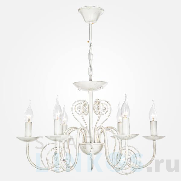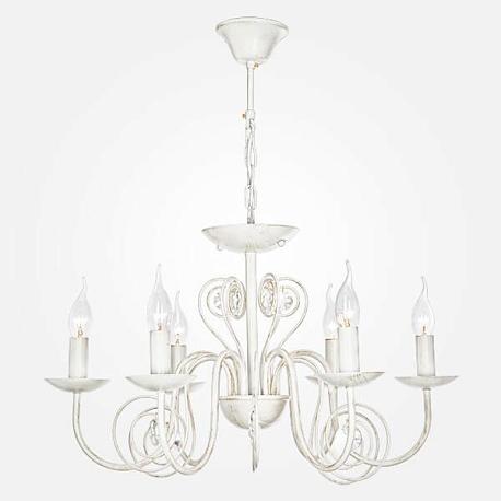 Поставщик рекомендует использовать лампы накаливания с цоколем E14. Подвесная люстра Eurosvet 60018/6 белый с золотом в стиле прованс используется в интерьере спальни с установкой на потолок.