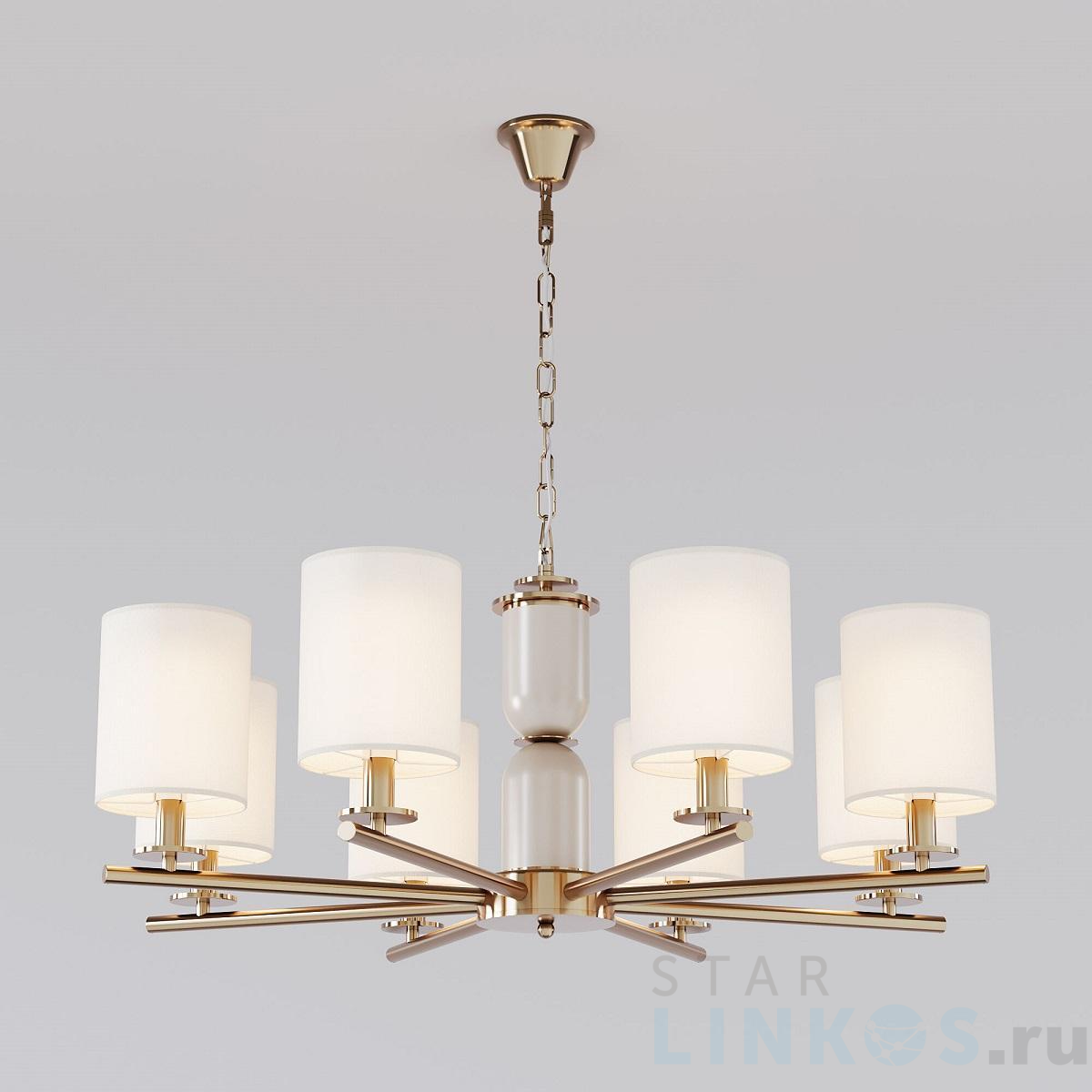 Поставщик рекомендует использовать лампы накаливания с цоколем E14 для освещения площади 14 м2. Подвесная люстра Eurosvet Caprera 60146/8 латунь в классическом стиле используется в интерьере гостиной с установкой на потолок.