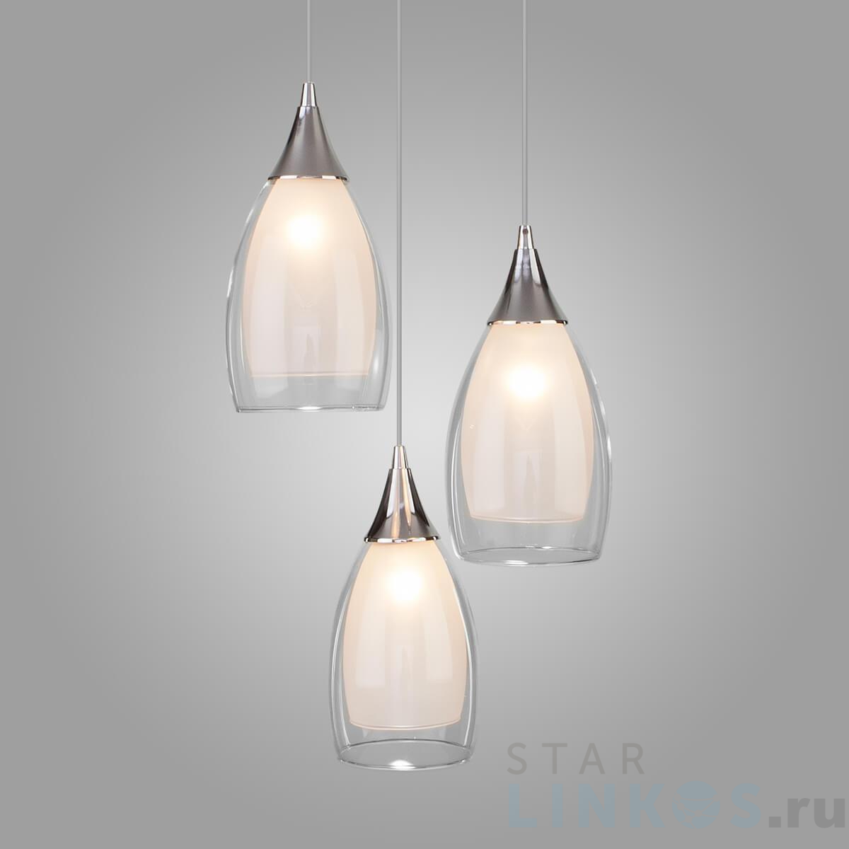 Подвесная люстра Eurosvet Cosmic 50085/3 хром в современном стиле используется в интерьере кухни с установкой на потолок.