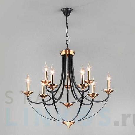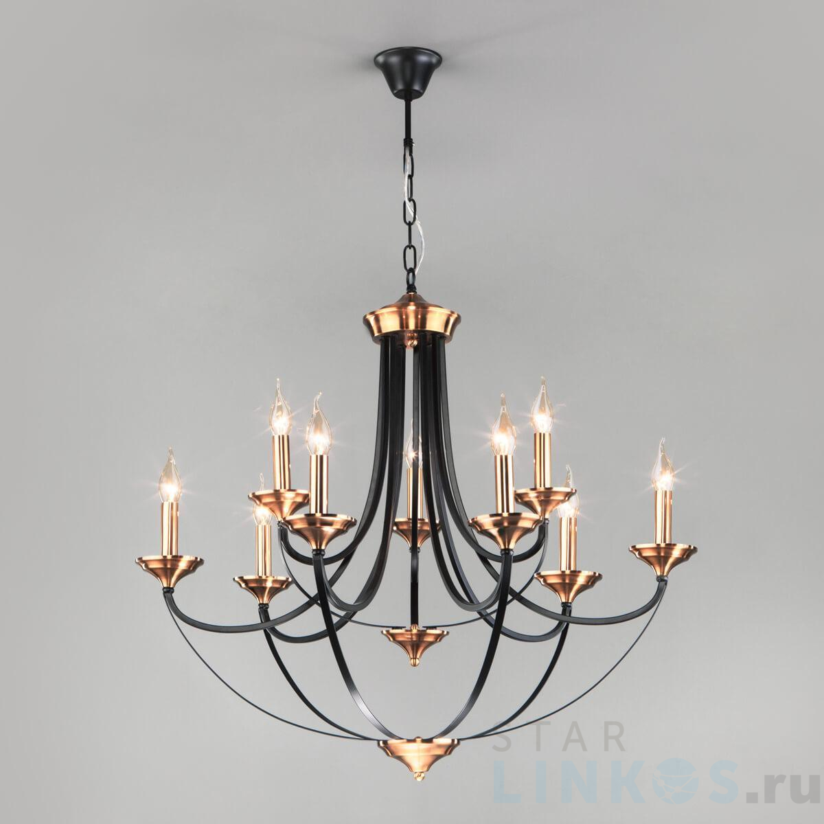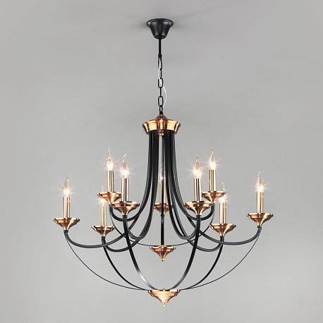 Поставщик рекомендует использовать лампы накаливания с цоколем E14 для освещения площади 30 м2. Подвесная люстра Eurosvet Lazzaro 60098/9 черный в замковом стиле используется в интерьере гостиной с установкой на потолок.