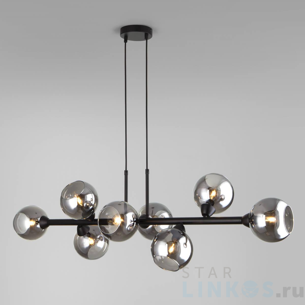 Поставщик рекомендует использовать лампы накаливания с цоколем E14 для освещения площади 17,8 м2. Подвесная люстра Eurosvet Roger 70113/8 дымчатый в современном стиле используется в интерьере кухни с установкой на потолок.