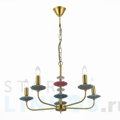 Поставщик рекомендует использовать лампы накаливания с цоколем E14 для освещения площади 12 м2. Подвесная люстра Evoluce Attic SLE1117-203-05 в используется в интерьере кухни с установкой на потолок.