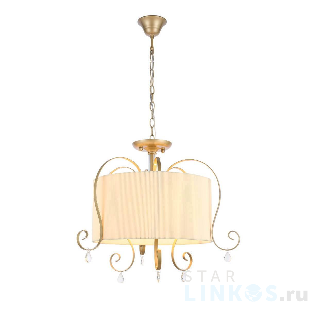 Поставщик рекомендует использовать лампы накаливания с цоколем E14 для освещения площади 6,7 м2. Подвесная люстра Evoluce Azzurro SL177.213.03 в классическом стиле используется в интерьере спальни с установкой на потолок.