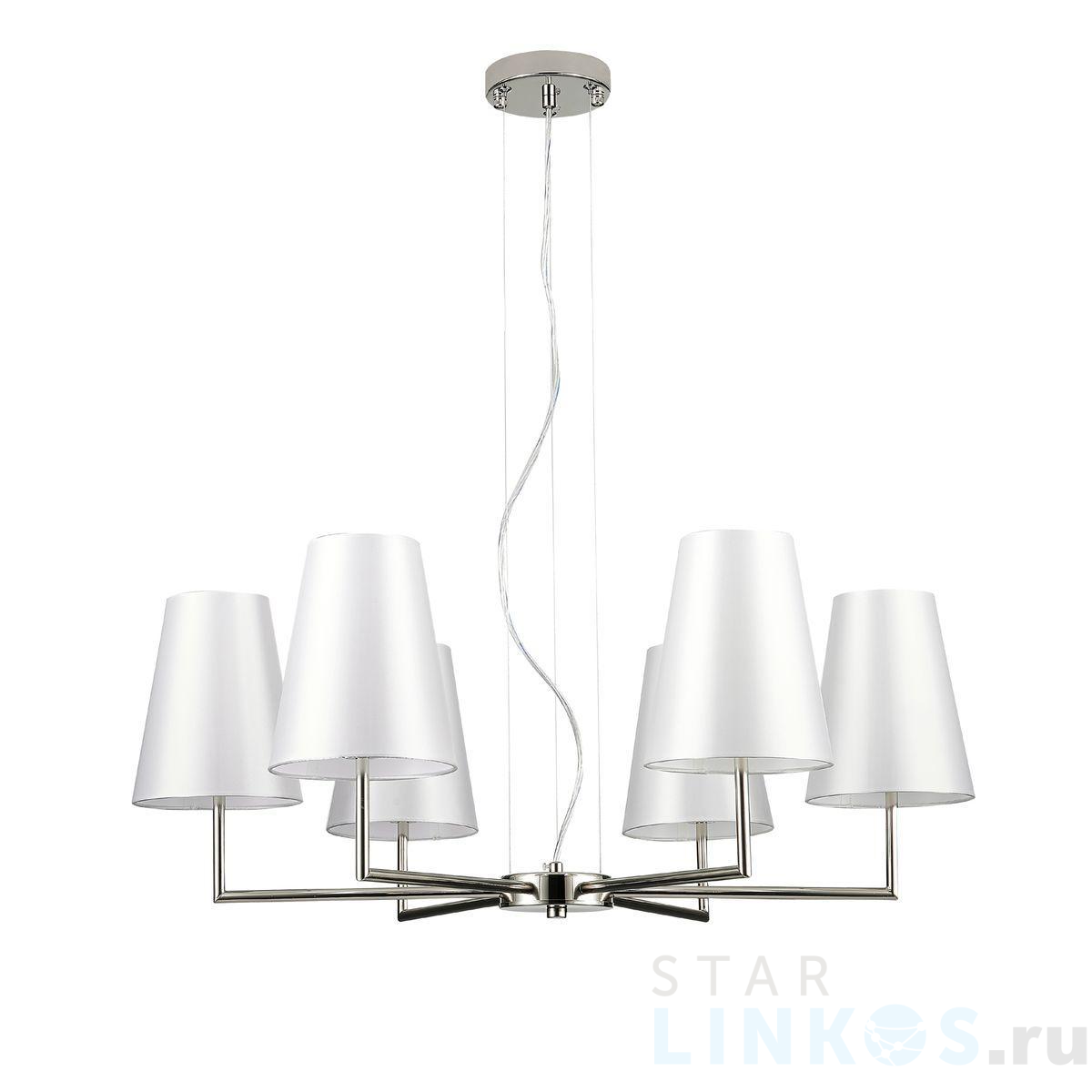 Поставщик рекомендует использовать лампы накаливания с цоколем E14 для освещения площади 13,3 м2. Подвесная люстра Evoluce Bellino SLE105903-06 в используется в интерьере спальни с установкой на потолок.