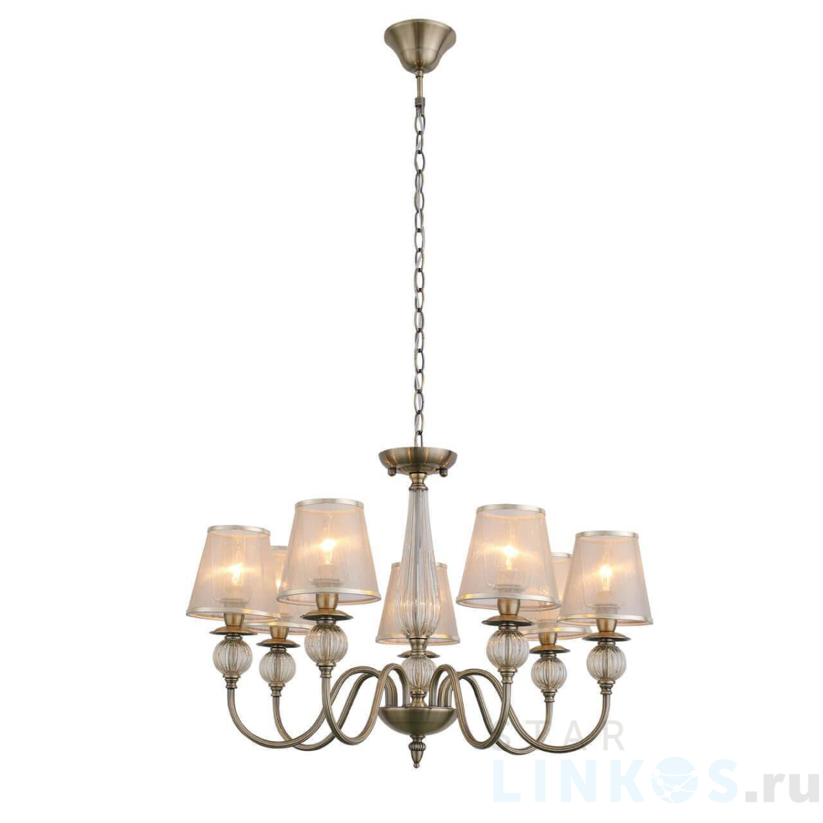 Поставщик рекомендует использовать лампы накаливания с цоколем E14 для освещения площади 14 м2. Подвесная люстра Evoluce Grazia SL185.303.07 в используется в интерьере гостиной с установкой на потолок.