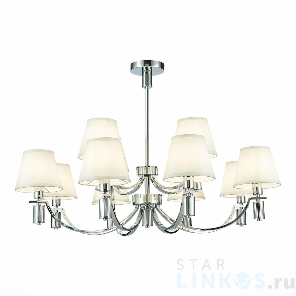 Поставщик рекомендует использовать лампы накаливания с цоколем E14 для освещения площади 24 м2. Подвесная люстра Evoluce Monza SLE111303-12 в современном стиле используется в интерьере больших залов с установкой на потолок.