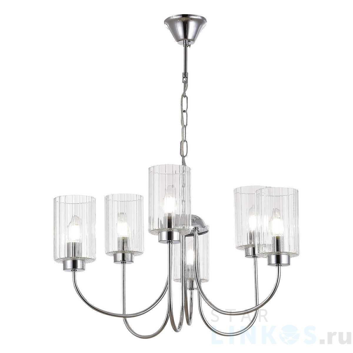 Поставщик рекомендует использовать лампы накаливания с цоколем E14 для освещения площади 12 м2. Подвесная люстра Evoluce Tilda SLE1127-103-06 в используется в интерьере спальни с установкой на потолок.