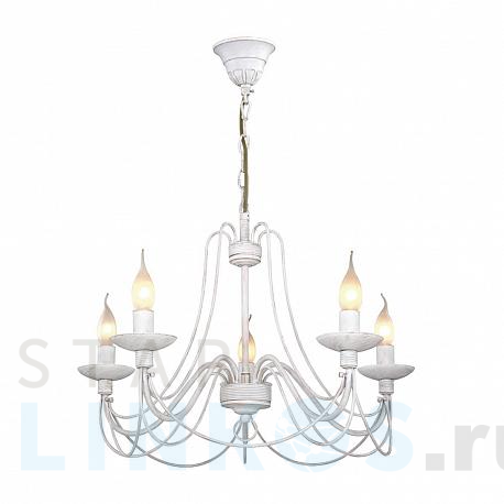 Поставщик рекомендует использовать лампы накаливания с цоколем E14. Подвесная люстра F-Promo Chateau 2164-5P в замковом стиле используется в интерьере спальни с установкой на потолок.