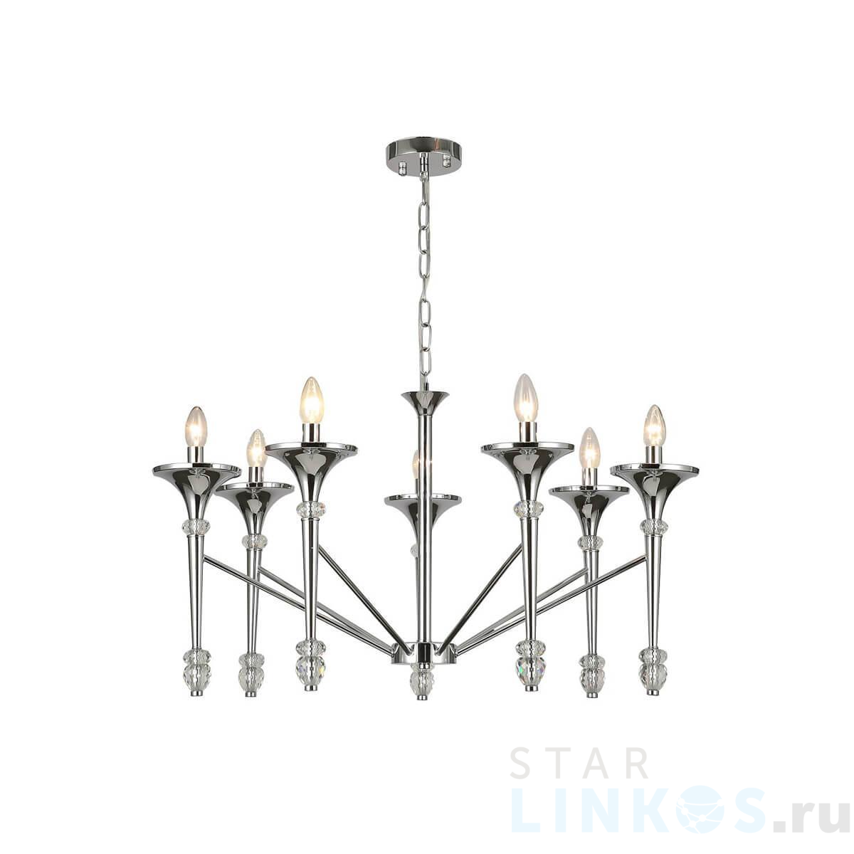 Поставщик рекомендует использовать лампы накаливания с цоколем E14 для освещения площади 23,3 м2. Подвесная люстра F-Promo Facem 2856-7P в используется в интерьере гостиной с установкой на потолок.