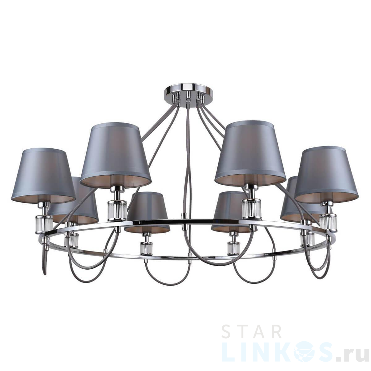 Поставщик рекомендует использовать лампы накаливания с цоколем E14 для освещения площади 17,8 м2. Подвесная люстра F-Promo Martina 2193-8P в используется в интерьере гостиной с установкой на потолок.