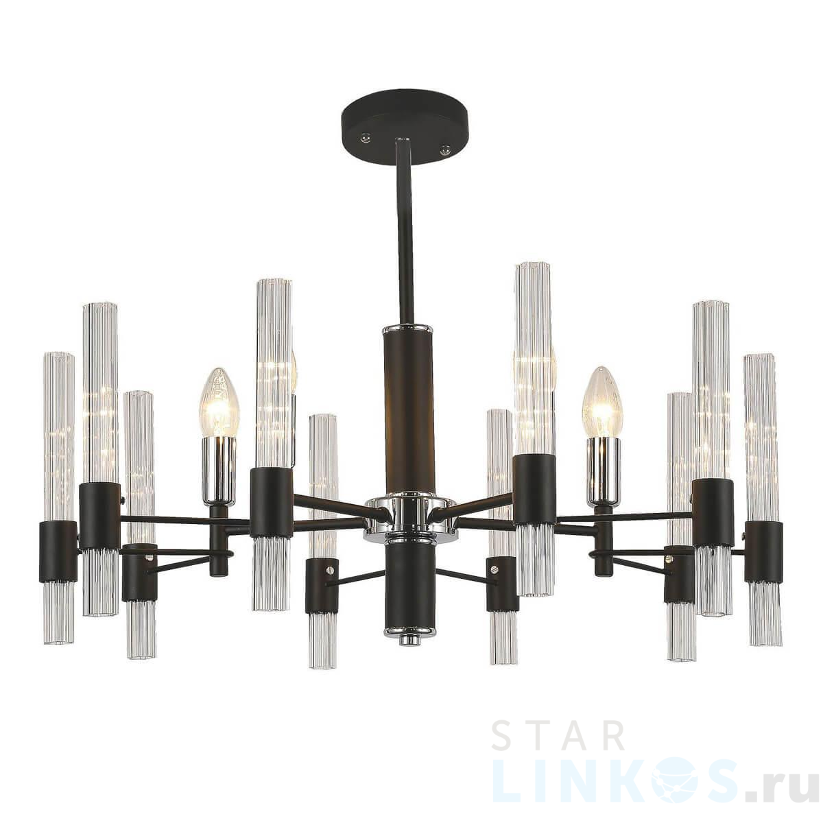 Поставщик рекомендует использовать лампы накаливания с цоколем E14 для освещения площади 11,1 м2. Подвесная люстра F-Promo Supreme 2490-5P в современном стиле используется в интерьере спальни с установкой на потолок.