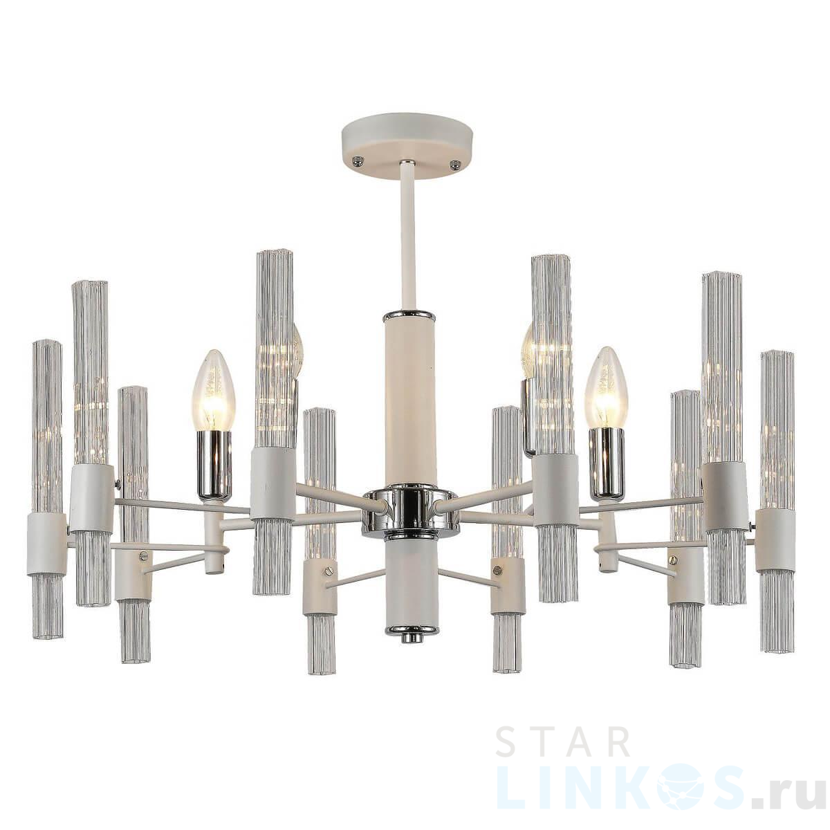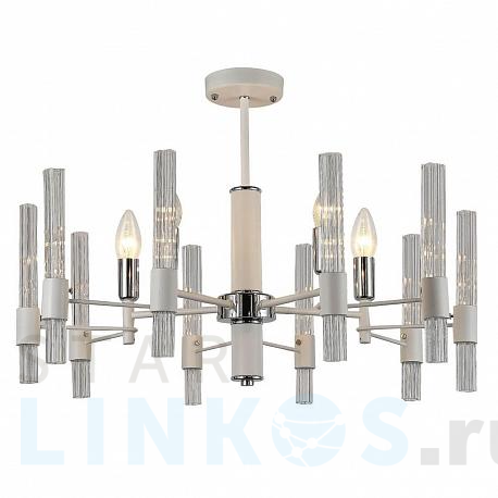 Поставщик рекомендует использовать лампы накаливания с цоколем E14 для освещения площади 11,1 м2. Подвесная люстра F-Promo Supreme 2539-5P в современном стиле используется в интерьере спальни с установкой на потолок.
