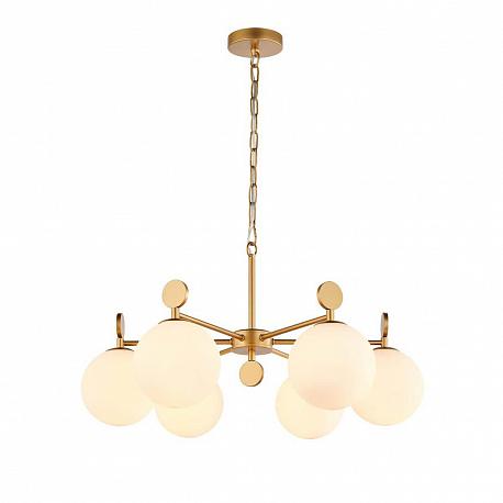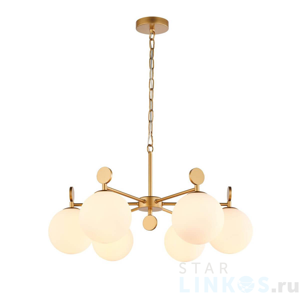 Поставщик рекомендует использовать лампы накаливания с цоколем E14 для освещения площади 12 м2. Подвесная люстра Favourite Absolute 2928-6P в современном стиле используется в интерьере кухни с установкой на потолок.