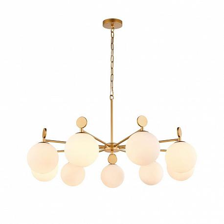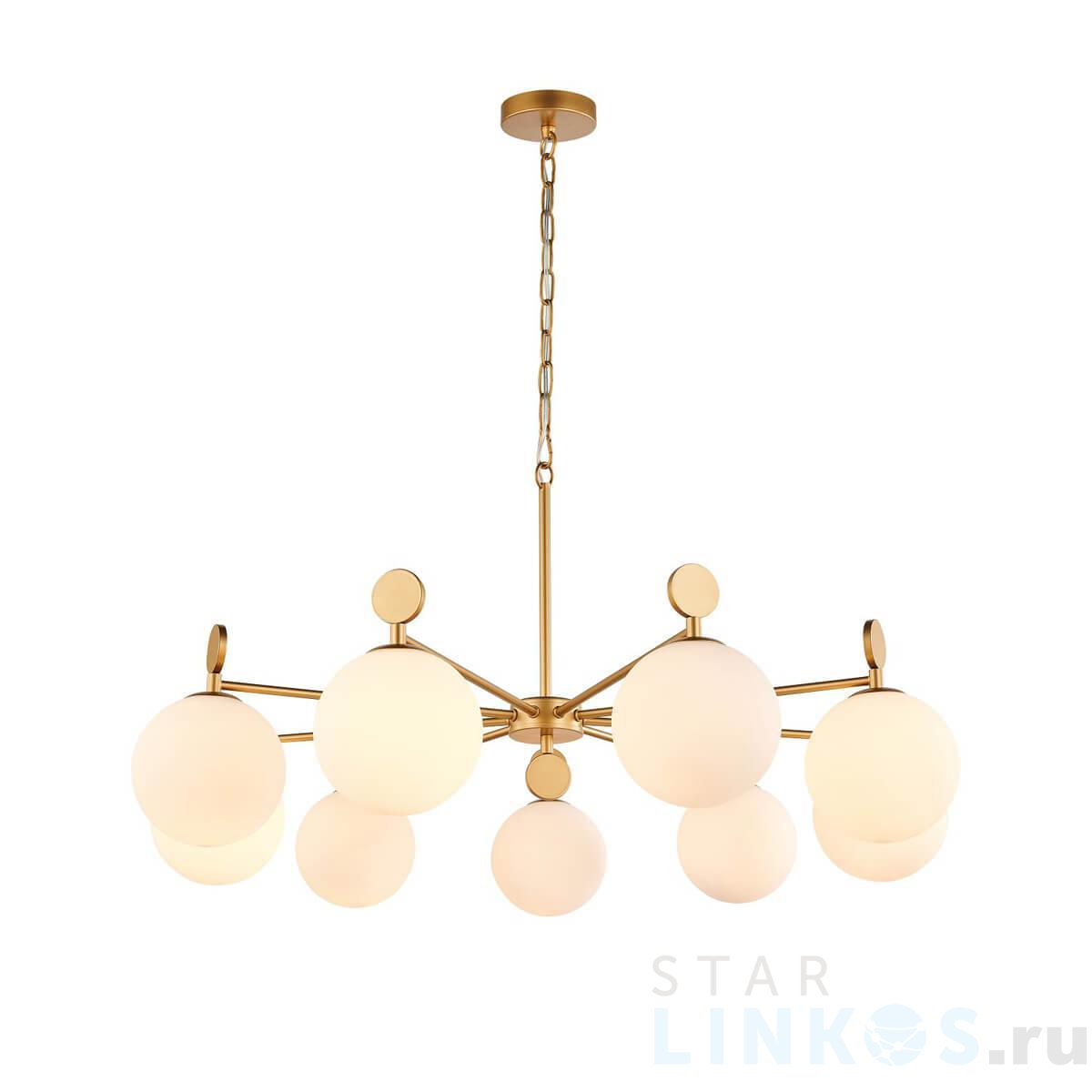 Поставщик рекомендует использовать лампы накаливания с цоколем E14 для освещения площади 18 м2. Подвесная люстра Favourite Absolute 2928-9P в современном стиле используется в интерьере гостиной с установкой на потолок.
