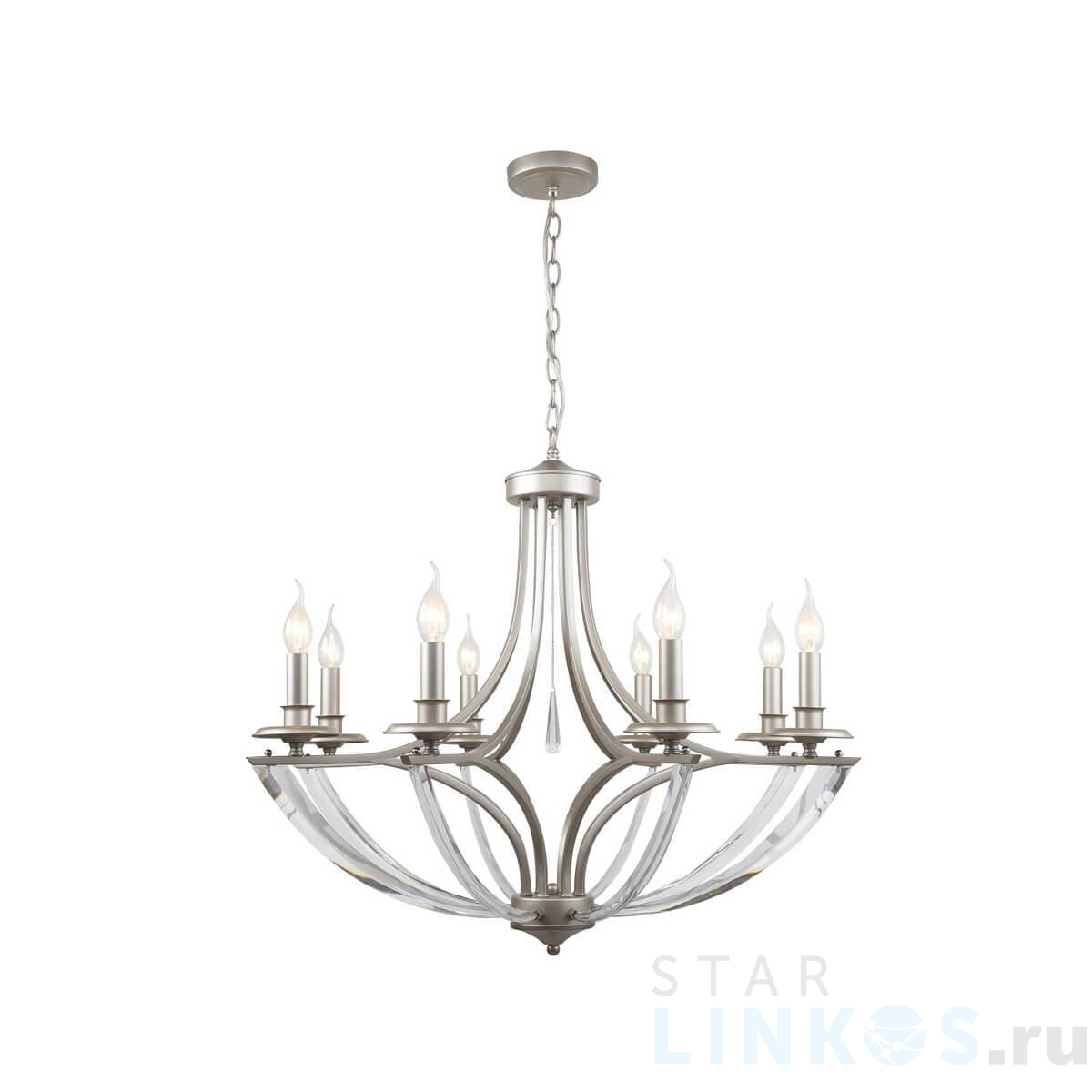 Поставщик рекомендует использовать лампы накаливания с цоколем E14 для освещения площади 16 м2. Подвесная люстра Favourite Adamant 2770-8P в используется в интерьере спальни с установкой на потолок.