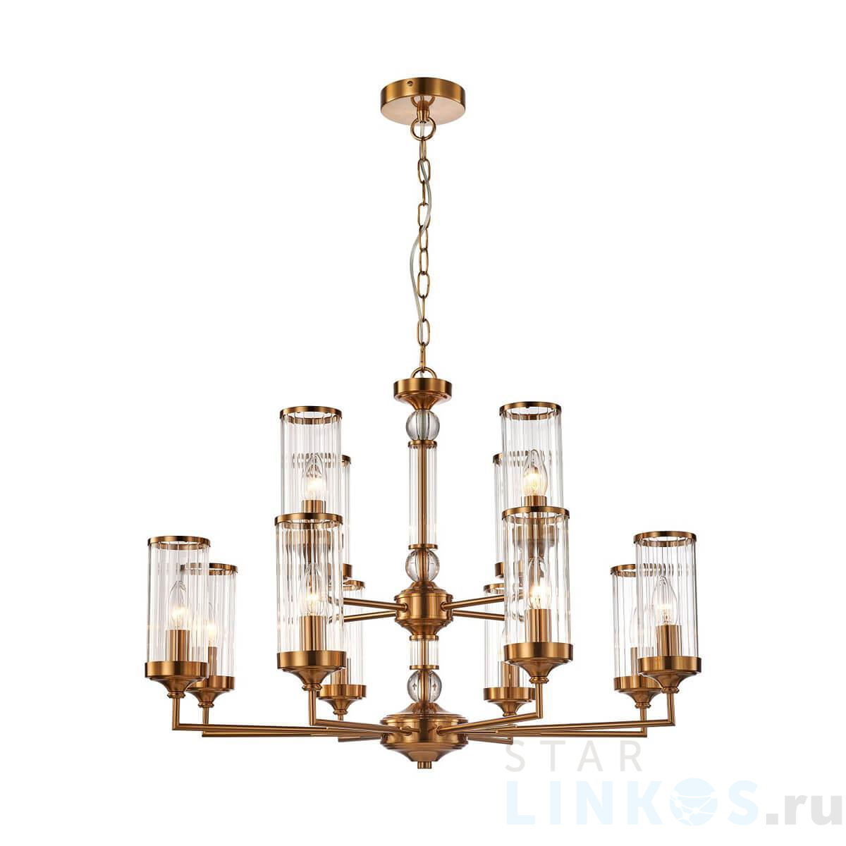 Поставщик рекомендует использовать лампы накаливания с цоколем E14 для освещения площади 24 м2. Подвесная люстра Favourite Basis 2927-12P в используется в интерьере гостиной с установкой на потолок.