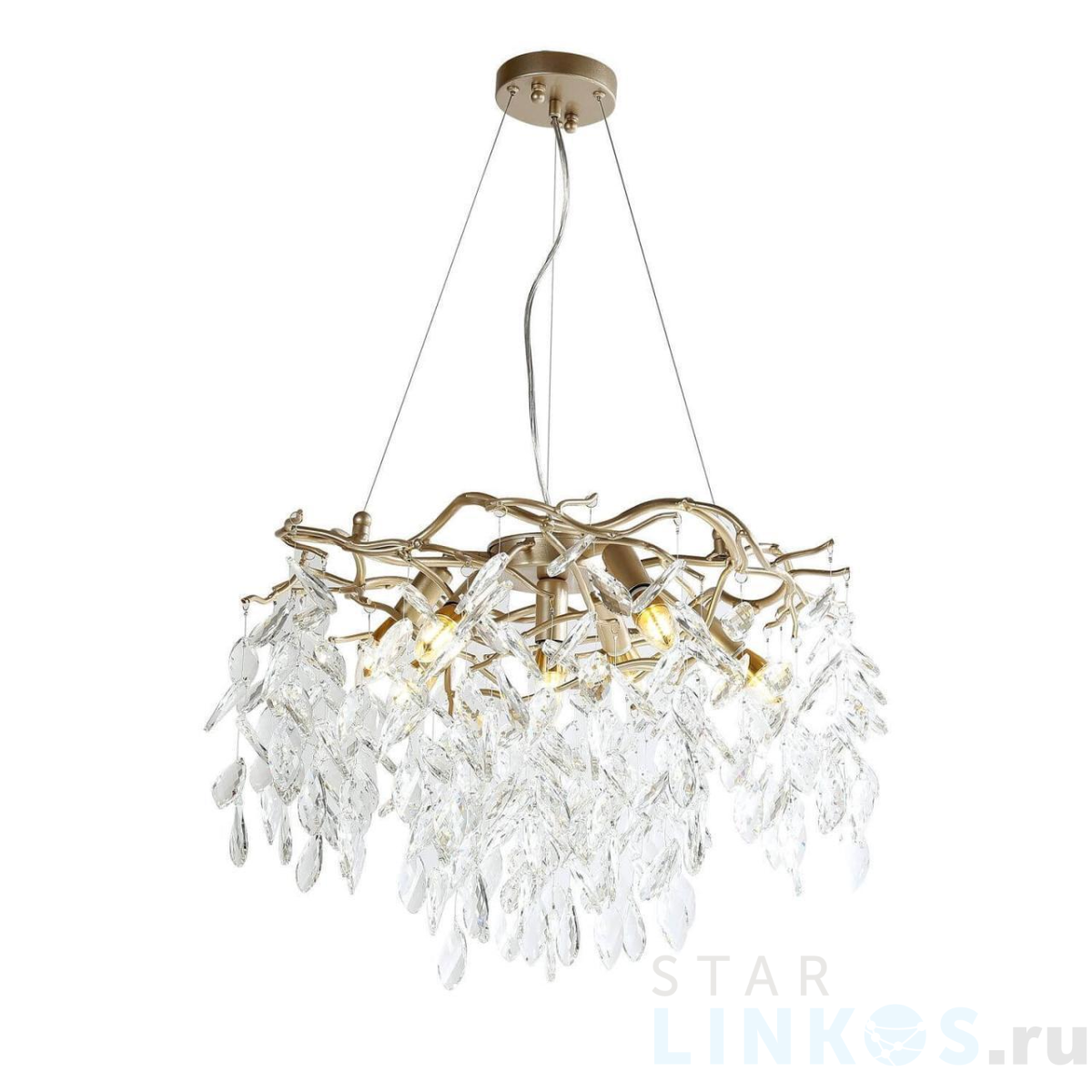 Поставщик рекомендует использовать лампы накаливания с цоколем E14 для освещения площади 14 м2. Подвесная люстра Favourite Brillo 3056-7P в замковом стиле используется в интерьере гостиной с установкой на потолок.