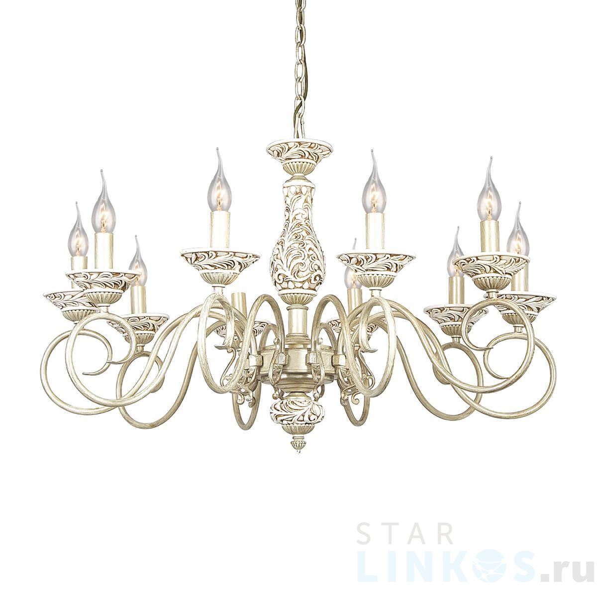 Поставщик рекомендует использовать лампы накаливания с цоколем E14 для освещения площади 33,3 м2. Подвесная люстра Favourite Bubbles 1141-10P в классическом стиле используется в интерьере гостиной с установкой на потолок.
