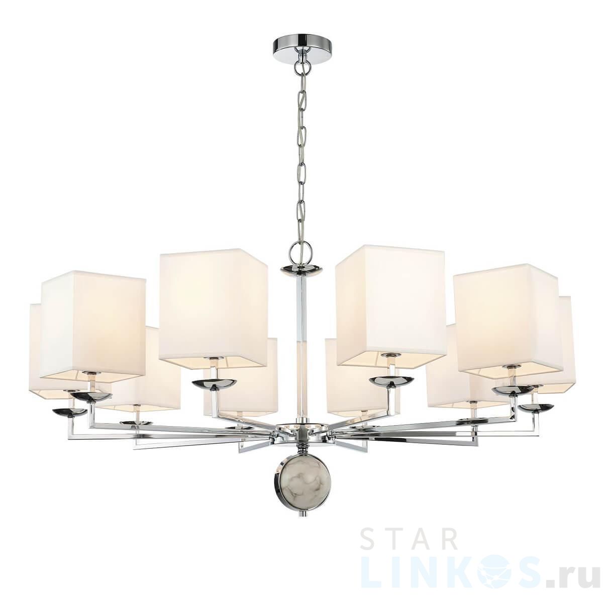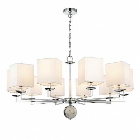 Поставщик рекомендует использовать лампы накаливания с цоколем E14 для освещения площади 22,2 м2. Подвесная люстра Favourite Diva 2821-10P в используется в интерьере гостиной с установкой на потолок.