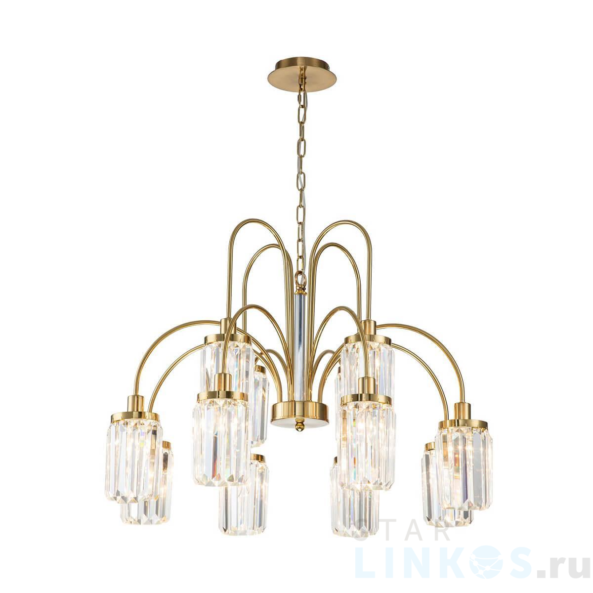 Поставщик рекомендует использовать лампы накаливания с цоколем E14 для освещения площади 24 м2. Подвесная люстра Favourite Duke 2969-12P в используется в интерьере гостиной с установкой на потолок.
