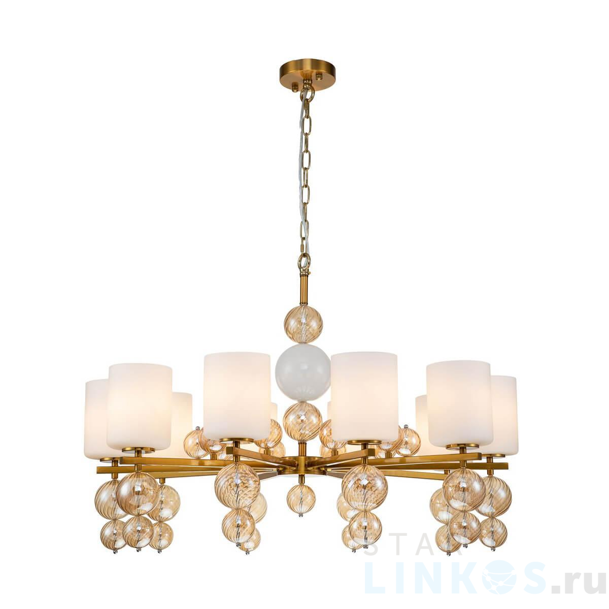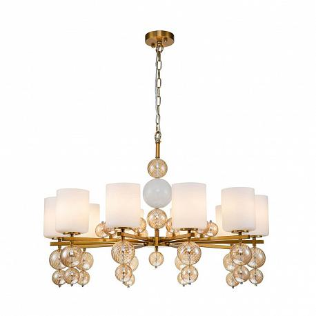 Поставщик рекомендует использовать лампы накаливания с цоколем E14. Подвесная люстра Favourite Ether 2998-10P в используется в интерьере гостиной с установкой на потолок.