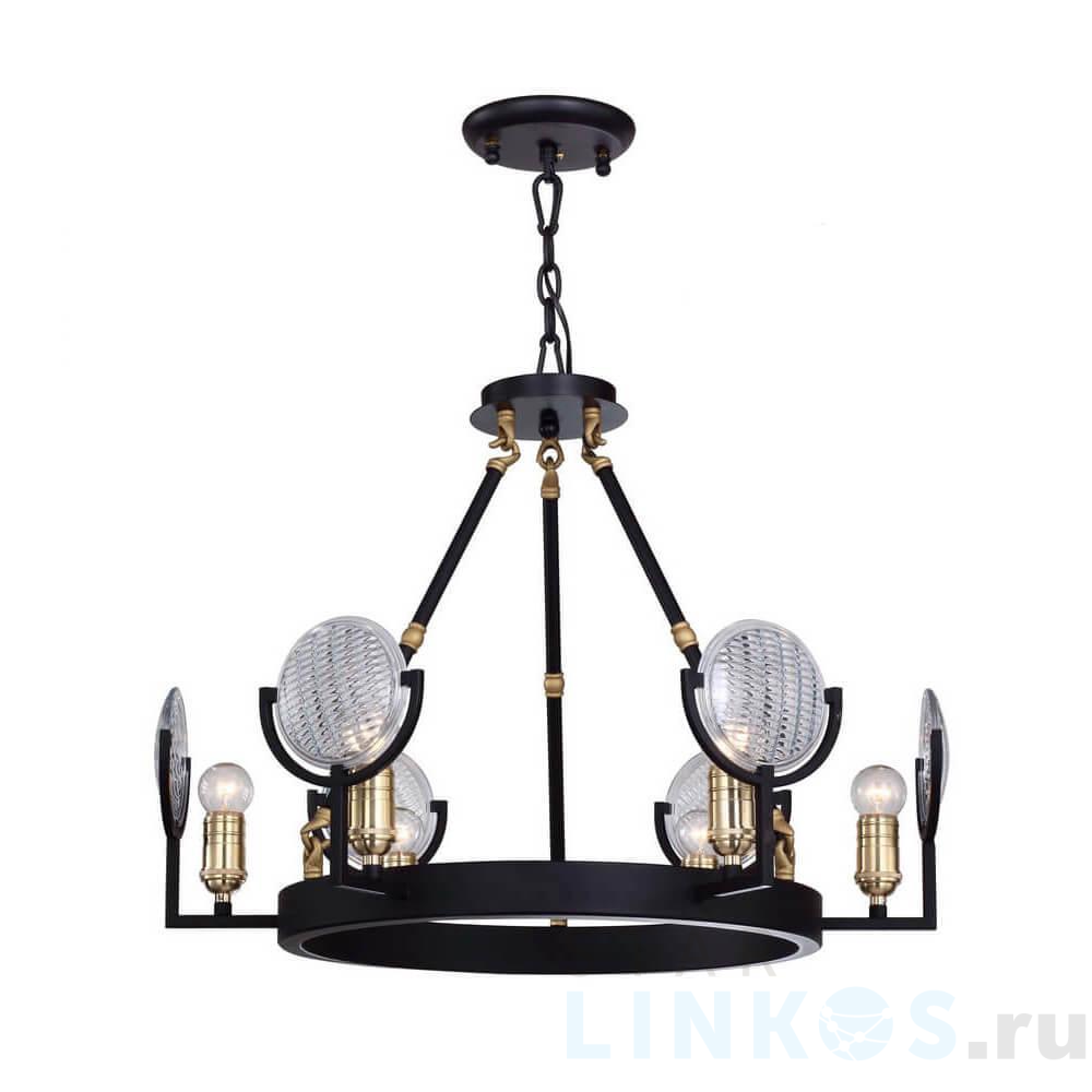 Поставщик рекомендует использовать лампы накаливания с цоколем E27 для освещения площади 13,3 м2. Подвесная люстра Favourite Fara 1721-6PC в стиле лофт используется в интерьере гостиной с установкой на потолок.