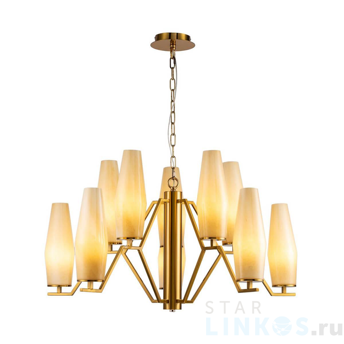 Поставщик рекомендует использовать лампы накаливания с цоколем E14 для освещения площади 22,2 м2. Подвесная люстра Favourite Figuris 2872-10P в кантри-стиле используется в интерьере гостиной с установкой на потолок.