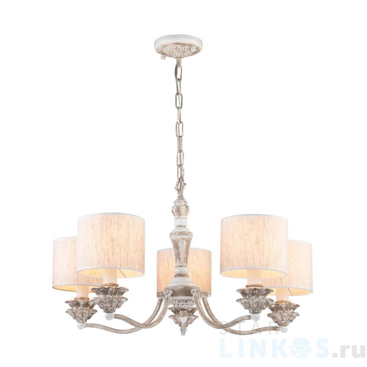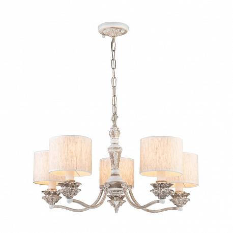 Поставщик рекомендует использовать лампы накаливания с цоколем E14 для освещения площади 11,1 м2. Подвесная люстра Favourite Fima 2700-5P в стиле прованс используется в интерьере гостиной с установкой на потолок.