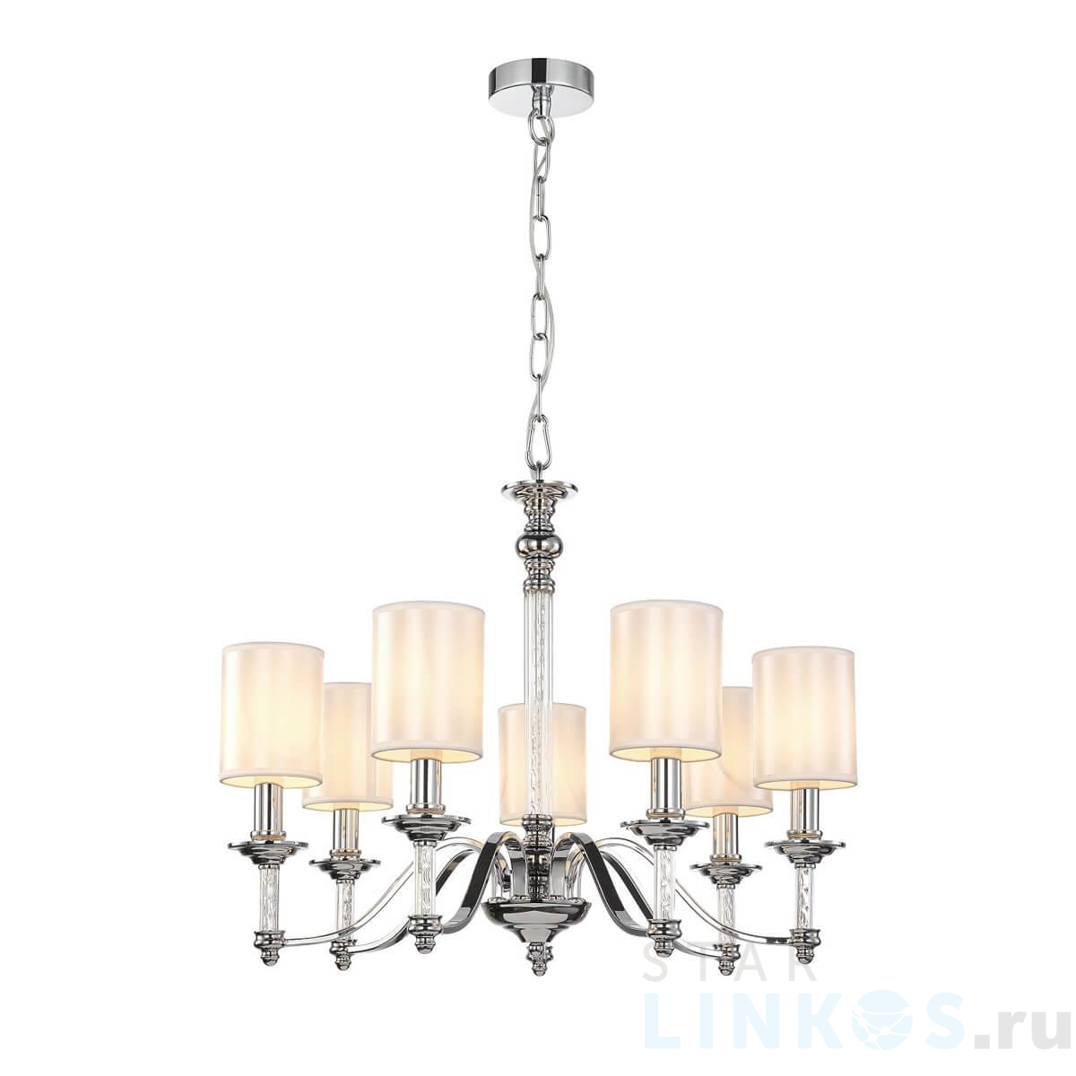 Поставщик рекомендует использовать лампы накаливания с цоколем E14 для освещения площади 14 м2. Подвесная люстра Favourite Gelios 2930-7P в классическом стиле используется в интерьере спальни с установкой на потолок.