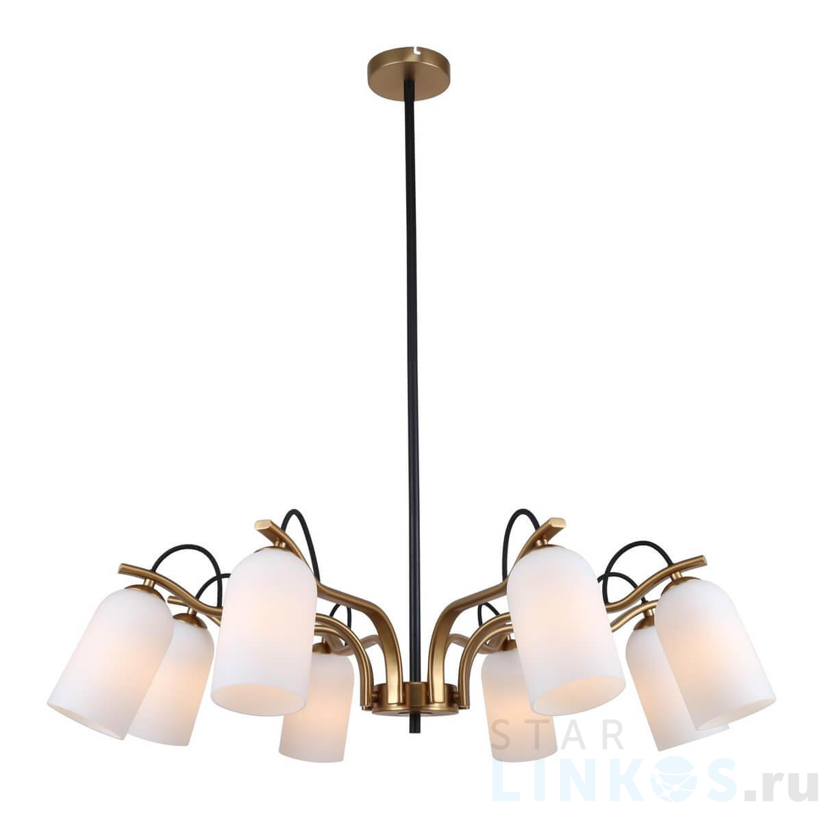 Поставщик рекомендует использовать лампы накаливания с цоколем E14 для освещения площади 17,8 м2. Подвесная люстра Favourite Grover 2668-8P в используется в интерьере гостиной с установкой на потолок.