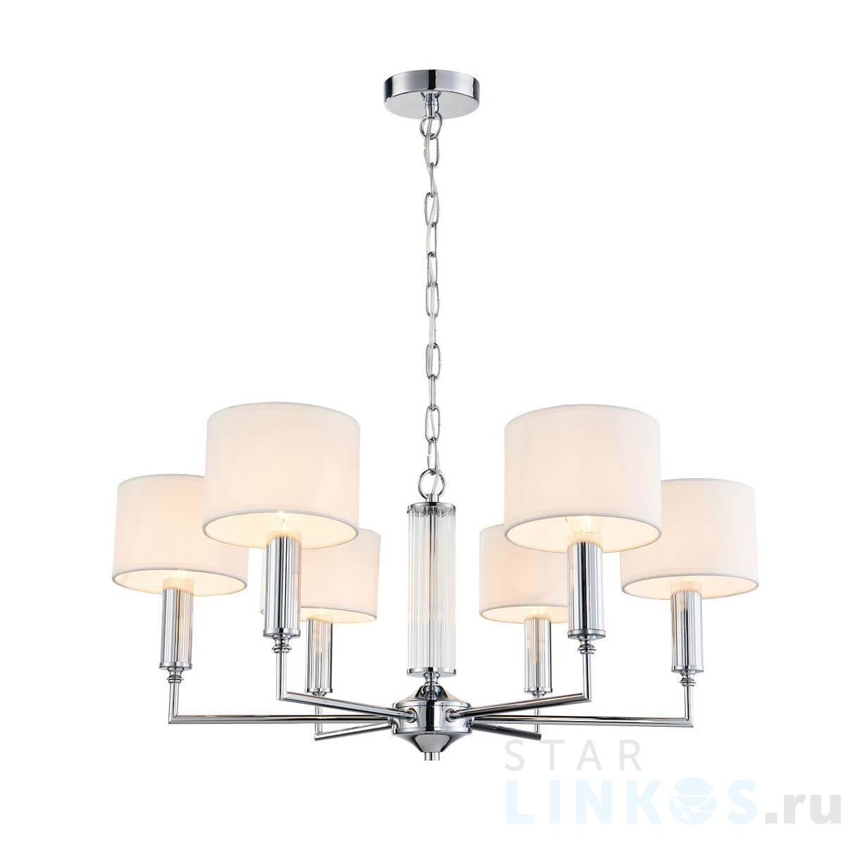 Поставщик рекомендует использовать лампы накаливания с цоколем E14. Подвесная люстра Favourite Laciness 2607-6P в современном стиле используется в интерьере спальни с установкой на потолок.