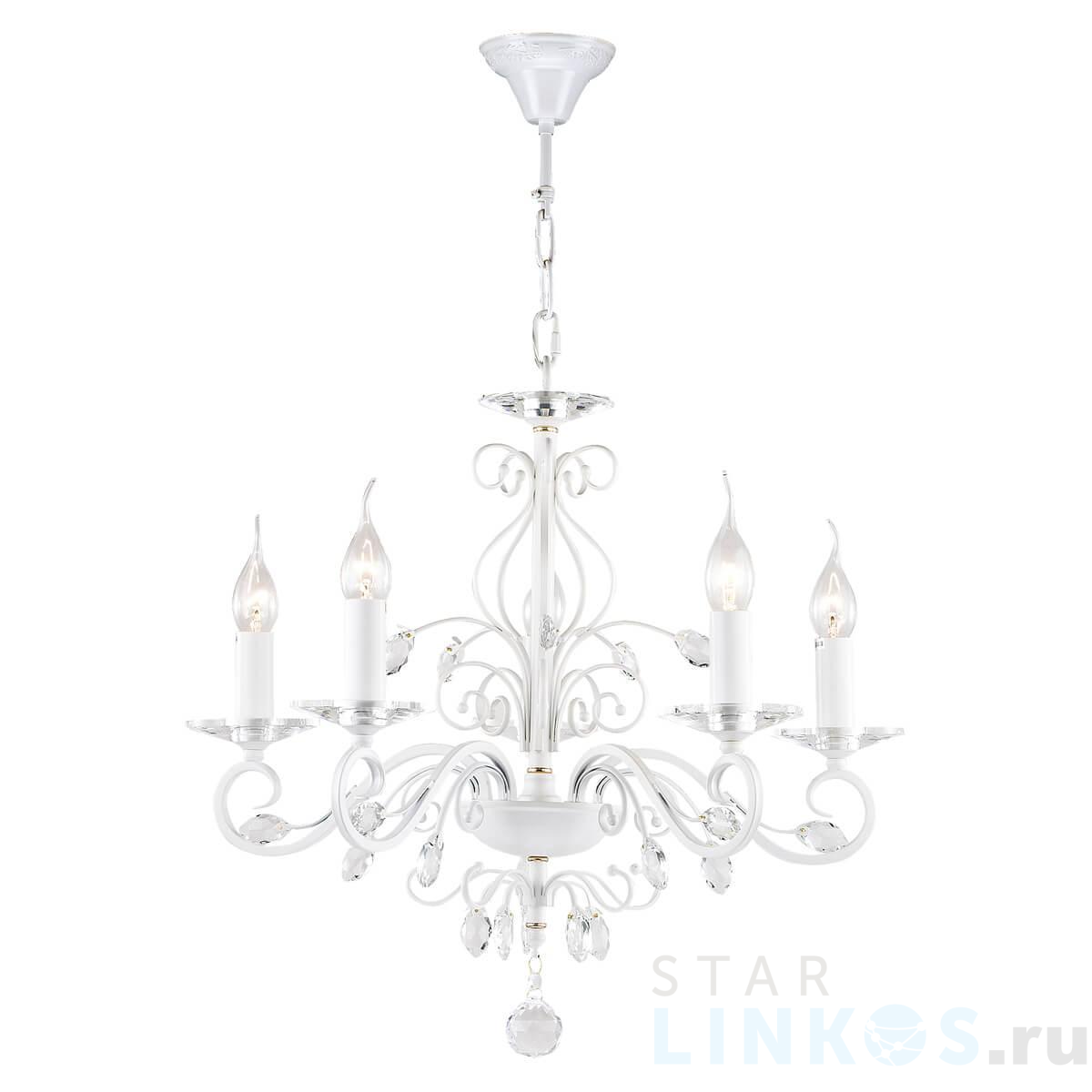 Поставщик рекомендует использовать лампы накаливания с цоколем E14 для освещения площади 11,1 м2. Подвесная люстра Favourite Lanta 1733-5P в используется в интерьере спальни с установкой на потолок.