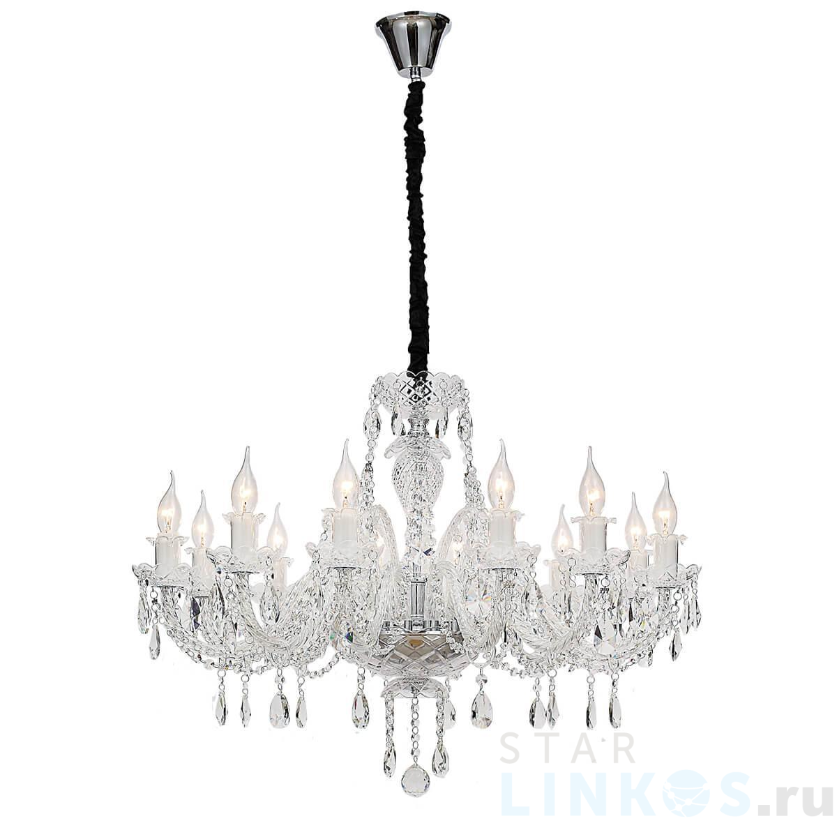 Поставщик рекомендует использовать лампы накаливания с цоколем E14 для освещения площади 26,7 м2. Подвесная люстра Favourite Lawanda 2022-12P в классическом стиле используется в интерьере больших залов с установкой на потолок.