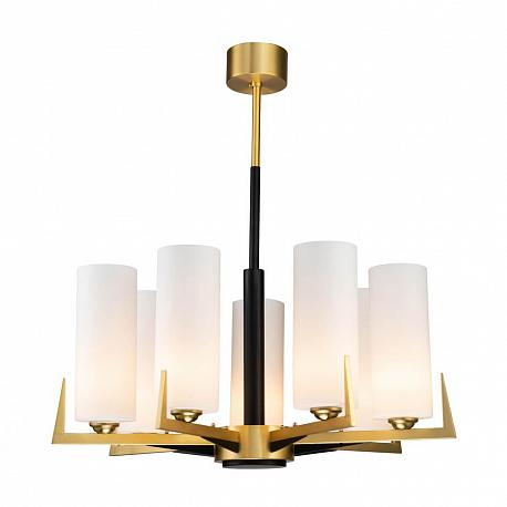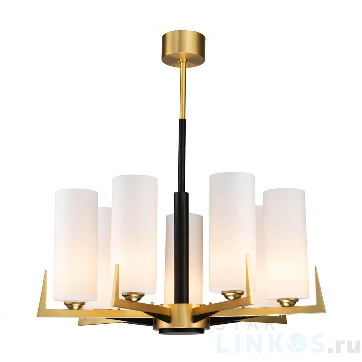 Поставщик рекомендует использовать лампы накаливания с цоколем E14 для освещения площади 15,6 м2. Подвесная люстра Favourite Maximo 2623-7P в современном стиле используется в интерьере спальни с установкой на потолок.
