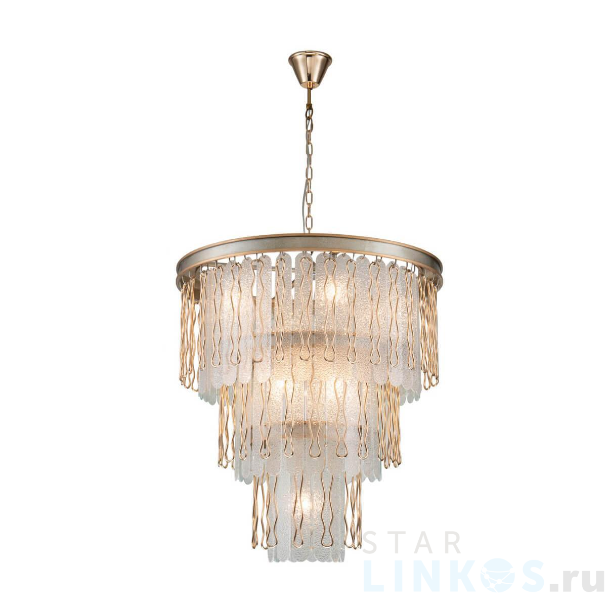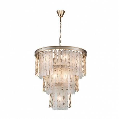 Поставщик рекомендует использовать лампы накаливания с цоколем E14 для освещения площади 20 м2. Подвесная люстра Favourite Medea 2696-9P в используется в интерьере гостиной с установкой на потолок.