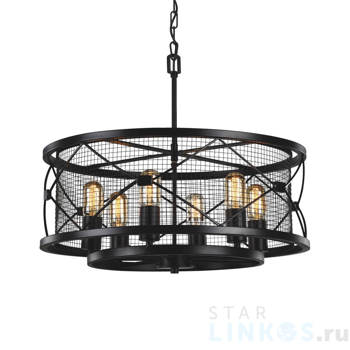Поставщик рекомендует использовать лампы накаливания с цоколем E27 для освещения площади 20 м2. Подвесная люстра Favourite Mesh 1783-6P в стиле лофт используется в интерьере гостиной с установкой на потолок.
