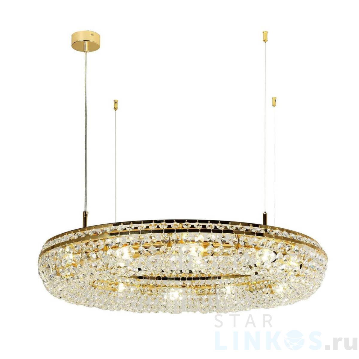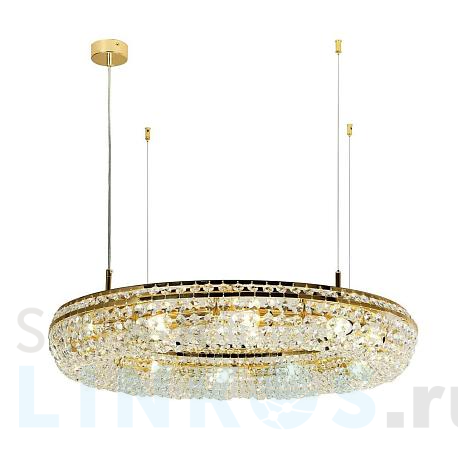 Поставщик рекомендует использовать лампы накаливания с цоколем E14 для освещения площади 24 м2. Подвесная люстра Favourite Monilibus 4015-12P в классическом стиле используется в интерьере гостиной с установкой на потолок.