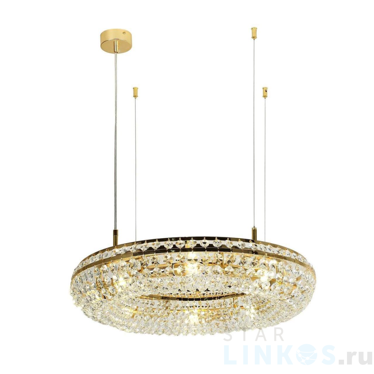 Поставщик рекомендует использовать лампы накаливания с цоколем E14 для освещения площади 16 м2. Подвесная люстра Favourite Monilibus 4015-8P в классическом стиле используется в интерьере гостиной с установкой на потолок.