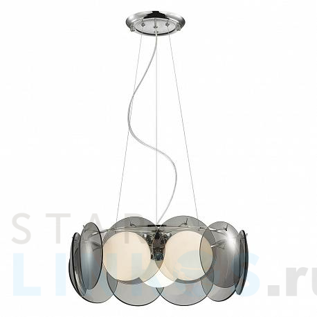 Поставщик рекомендует использовать лампы накаливания с цоколем E14 для освещения площади 6,7 м2. Подвесная люстра Favourite Palle 1131-3P в используется в интерьере гостиной с установкой на потолок.