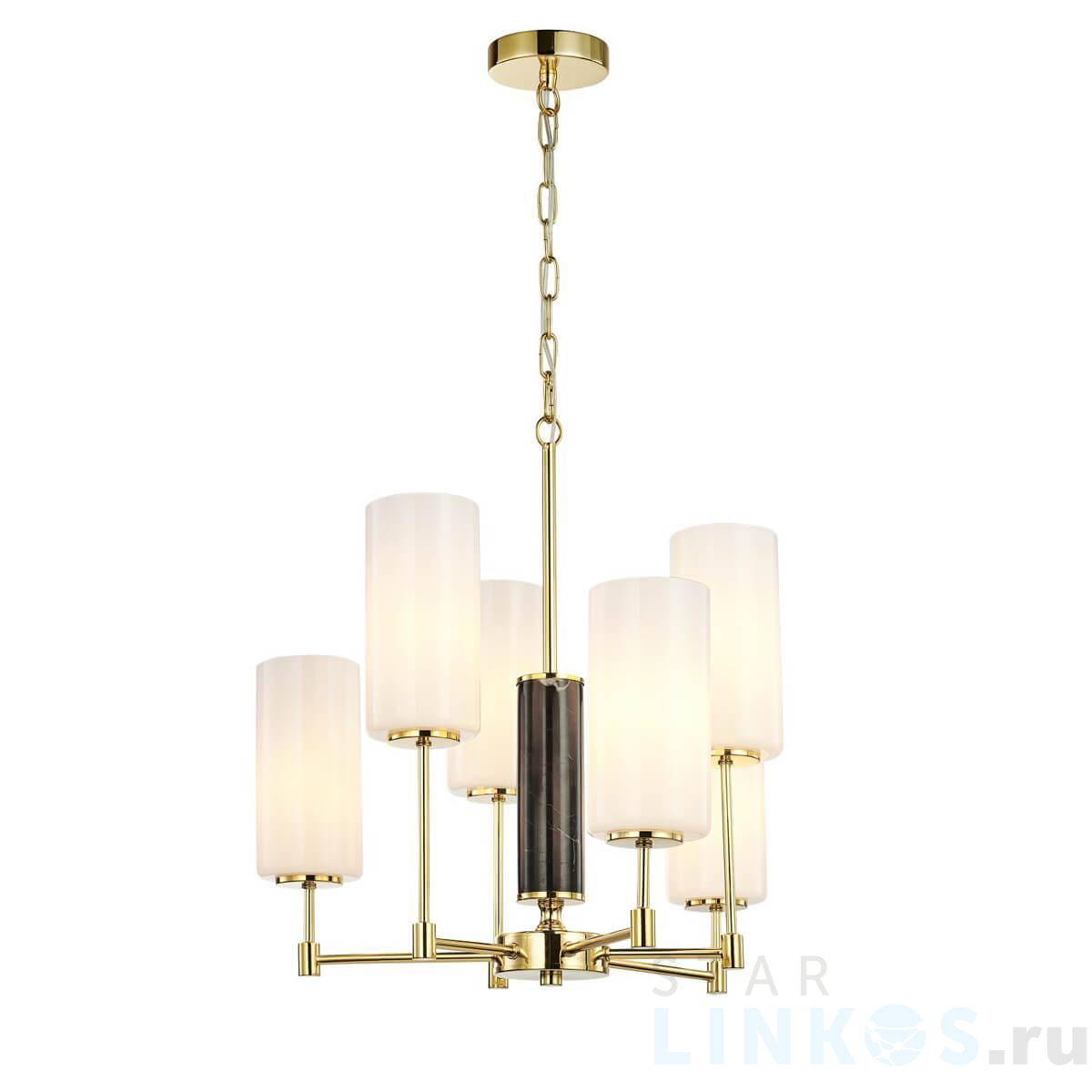 Поставщик рекомендует использовать лампы накаливания с цоколем E14 для освещения площади 13,3 м2. Подвесная люстра Favourite Palmarius 2815-6P в используется в интерьере кухни с установкой на потолок.