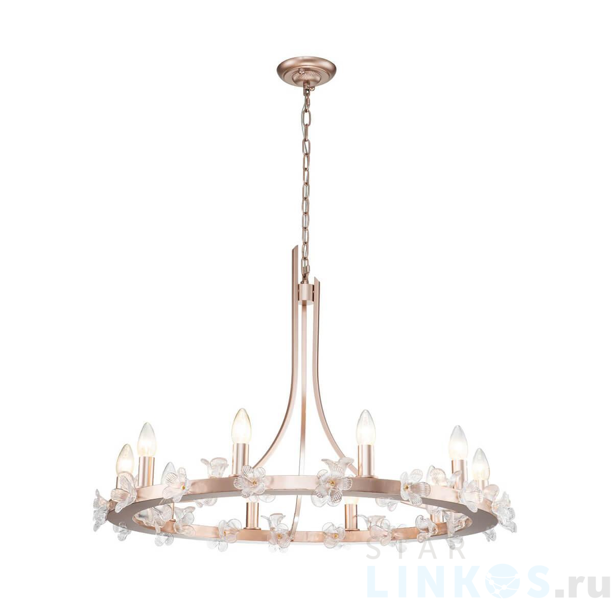 Поставщик рекомендует использовать лампы накаливания с цоколем E14 для освещения площади 20 м2. Подвесная люстра Favourite Palmira 2967-10P в стиле прованс используется в интерьере гостиной с установкой на потолок.