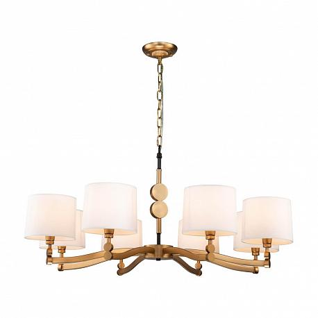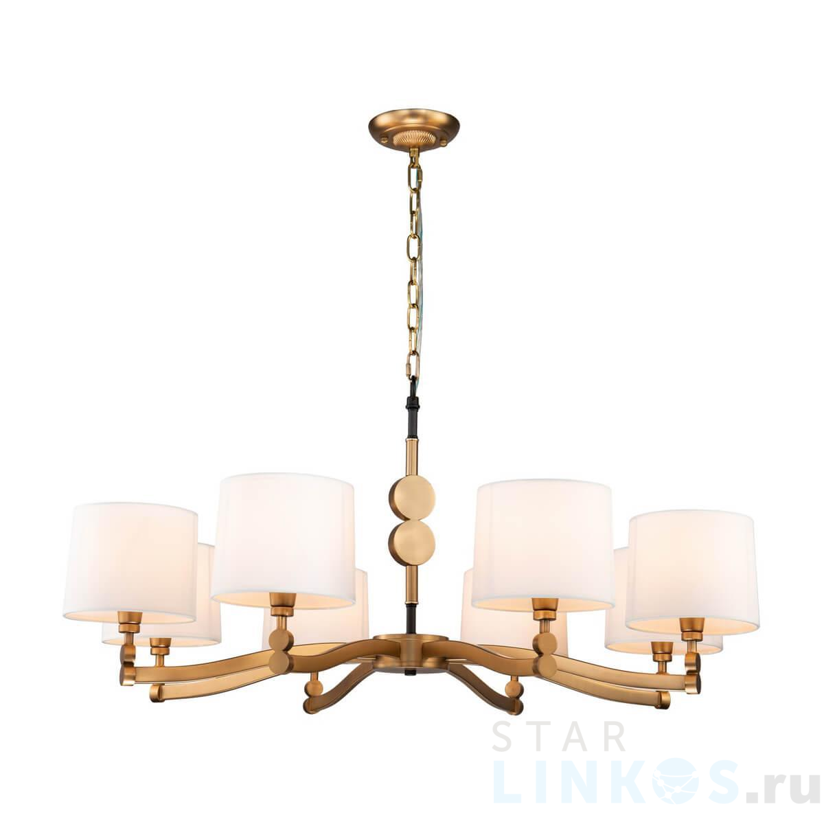 Поставщик рекомендует использовать лампы накаливания с цоколем E14 для освещения площади 17,8 м2. Подвесная люстра Favourite Roshe 2624-8P в кантри-стиле используется в интерьере гостиной с установкой на потолок.