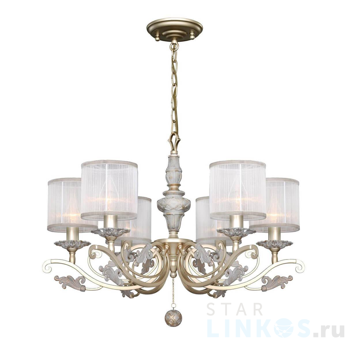 Поставщик рекомендует использовать лампы накаливания с цоколем E14 для освещения площади 13,3 м2. Подвесная люстра Favourite Seraphima 2307-6P в классическом стиле используется в интерьере спальни с установкой на потолок.