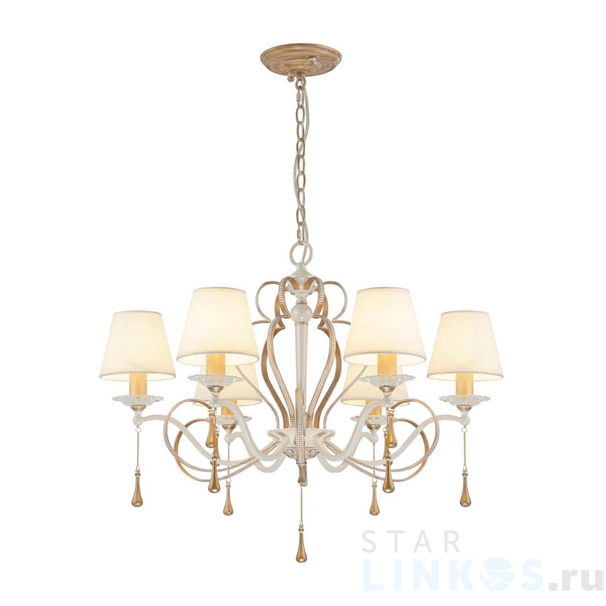 Поставщик рекомендует использовать лампы накаливания с цоколем E14 для освещения площади 13,3 м2. Подвесная люстра Favourite Silena 2635-6P в классическом стиле используется в интерьере спальни с установкой на потолок.
