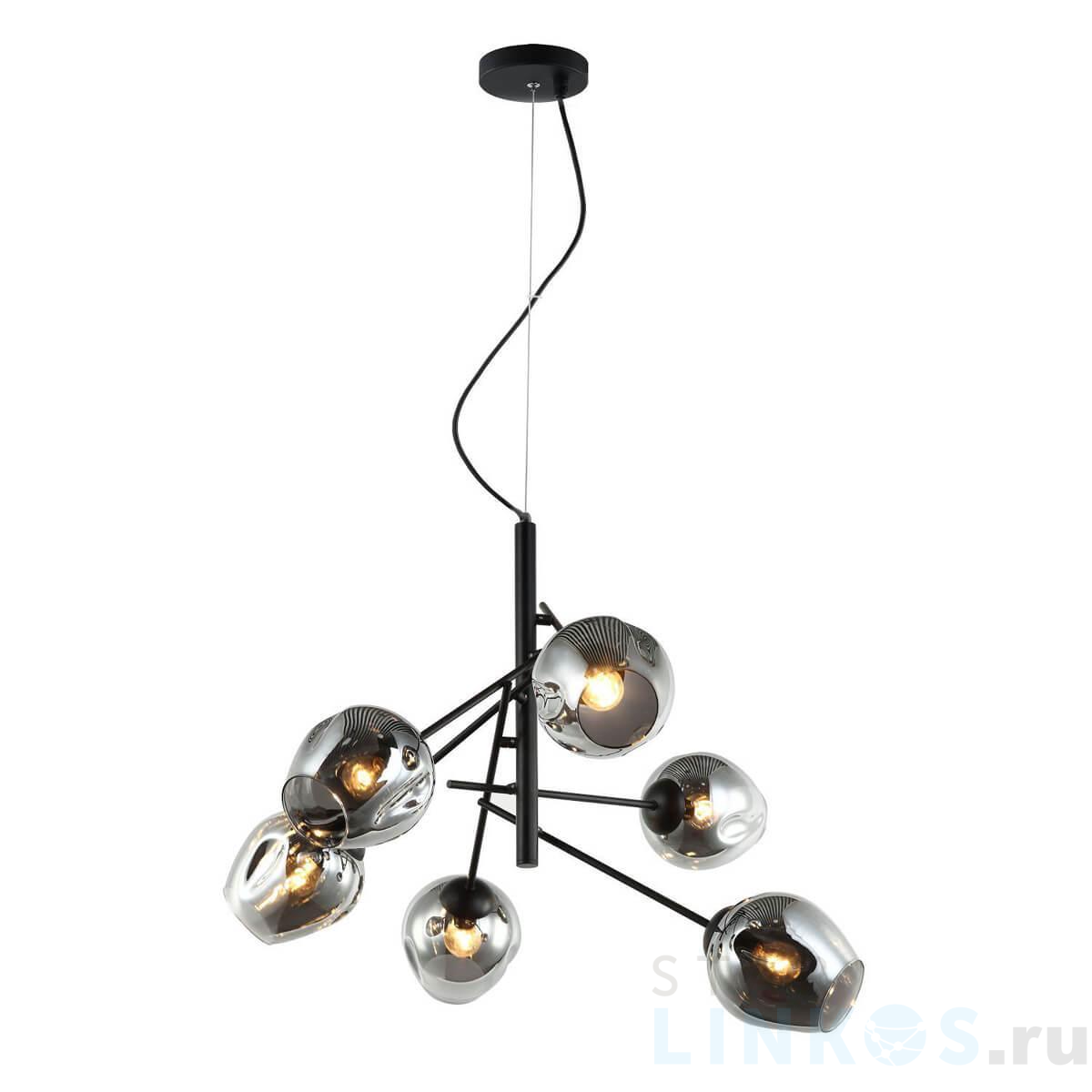 Поставщик рекомендует использовать лампы накаливания с цоколем E27. Подвесная люстра Favourite Traube 2359-6P в стиле Хай-Тек используется в интерьере спальни с установкой на потолок.