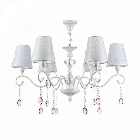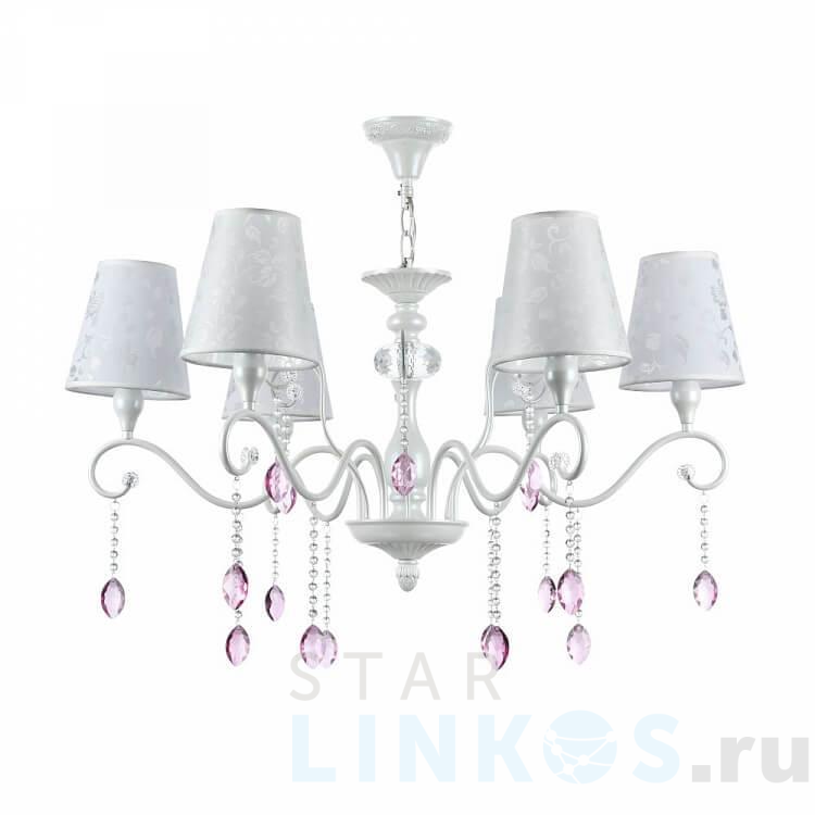 Поставщик рекомендует использовать лампы накаливания с цоколем E14 для освещения площади 13,3 м2. Подвесная люстра Freya Adelaide FR2306-PL-06-W в стиле прованс используется в интерьере спальни с установкой на потолок.
